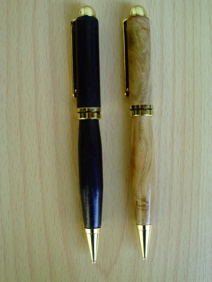 Stylo porte-mine, modèle Laurence, plaqué or 14cts. Essences présentées ci-dessous : ébène du Gabon et mersisier, 39,90 Eur.